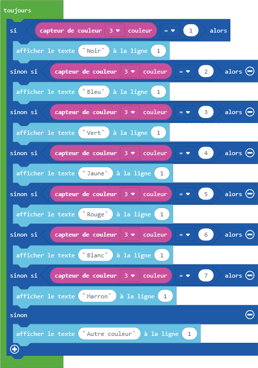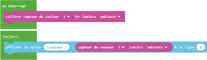 Test du capteur de couleur en mode "intensité lumière ambiante"
